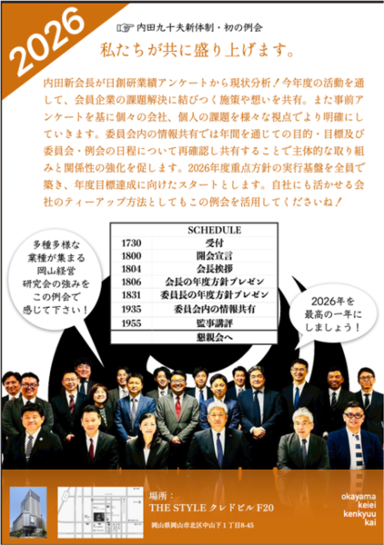 岡山経営研究会1月例会のご案内です。